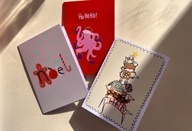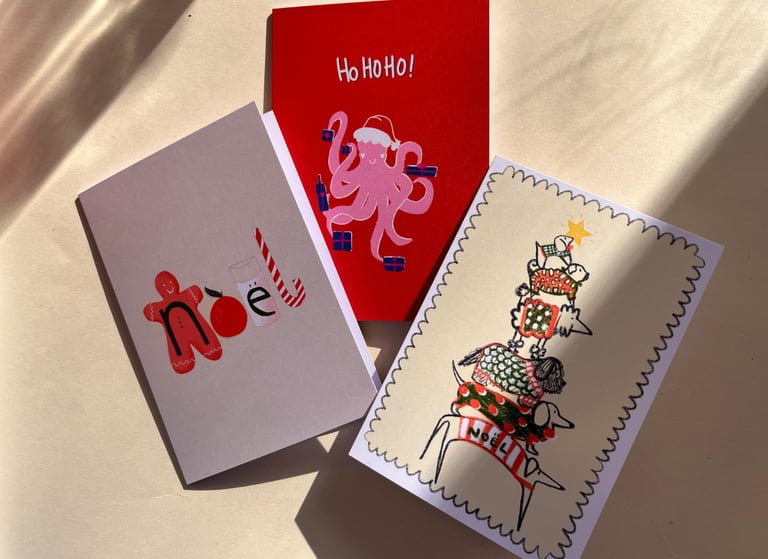 Célébrez la magie des fêtes avec les cartes de Noël illustrées par Beeb, originales, pleines de tendresse et de bonne humeur.